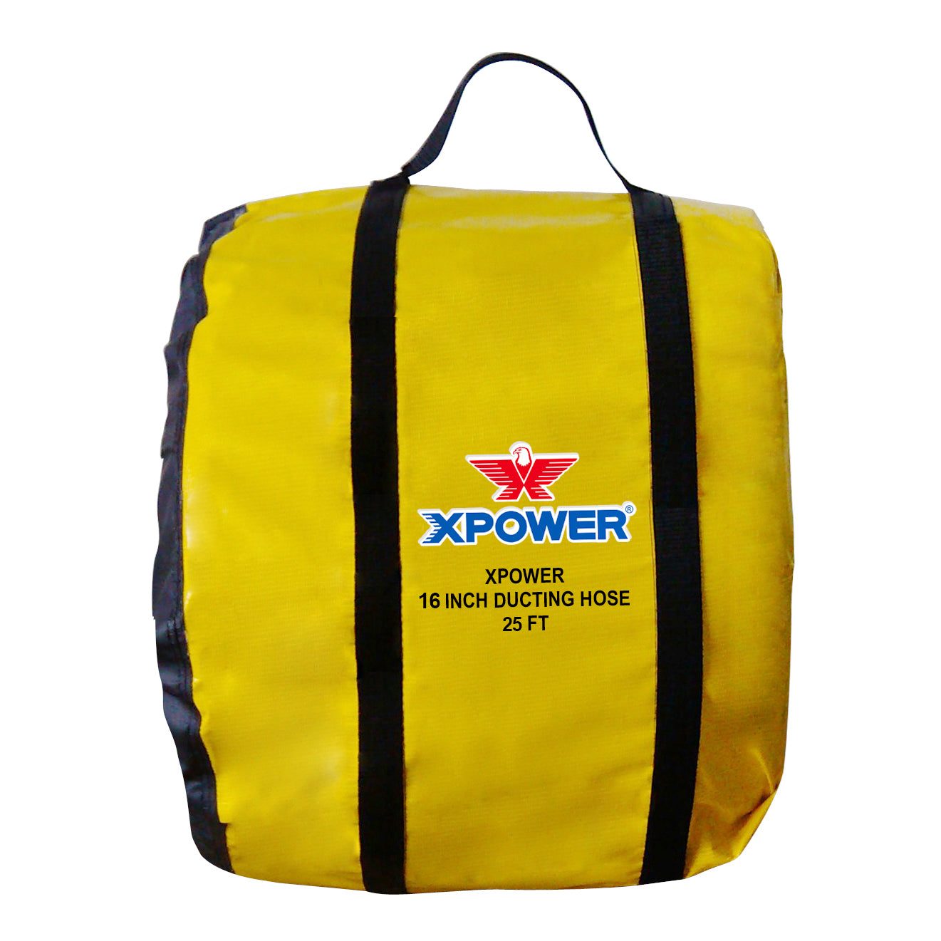 This XPOWER 25 ft. long ducting hose is a rugged PVC vinyl-coated polyester fabric hose with a black external PVC strip which resists exterior damage when dragging. This hose features a 16 inch. diameter and an integrated spring steel wire support coil which is flexible for expansion, compression and angled turns.  Great for heating, air conditioning, dehumidification, blower, ventilation and exhaust jobs in a variety of industrial, residential, and construction applications. An optional ducting hose adapter kit (16DHK) is available to connect ducting to the XPOWER X-47ATR axial fan.