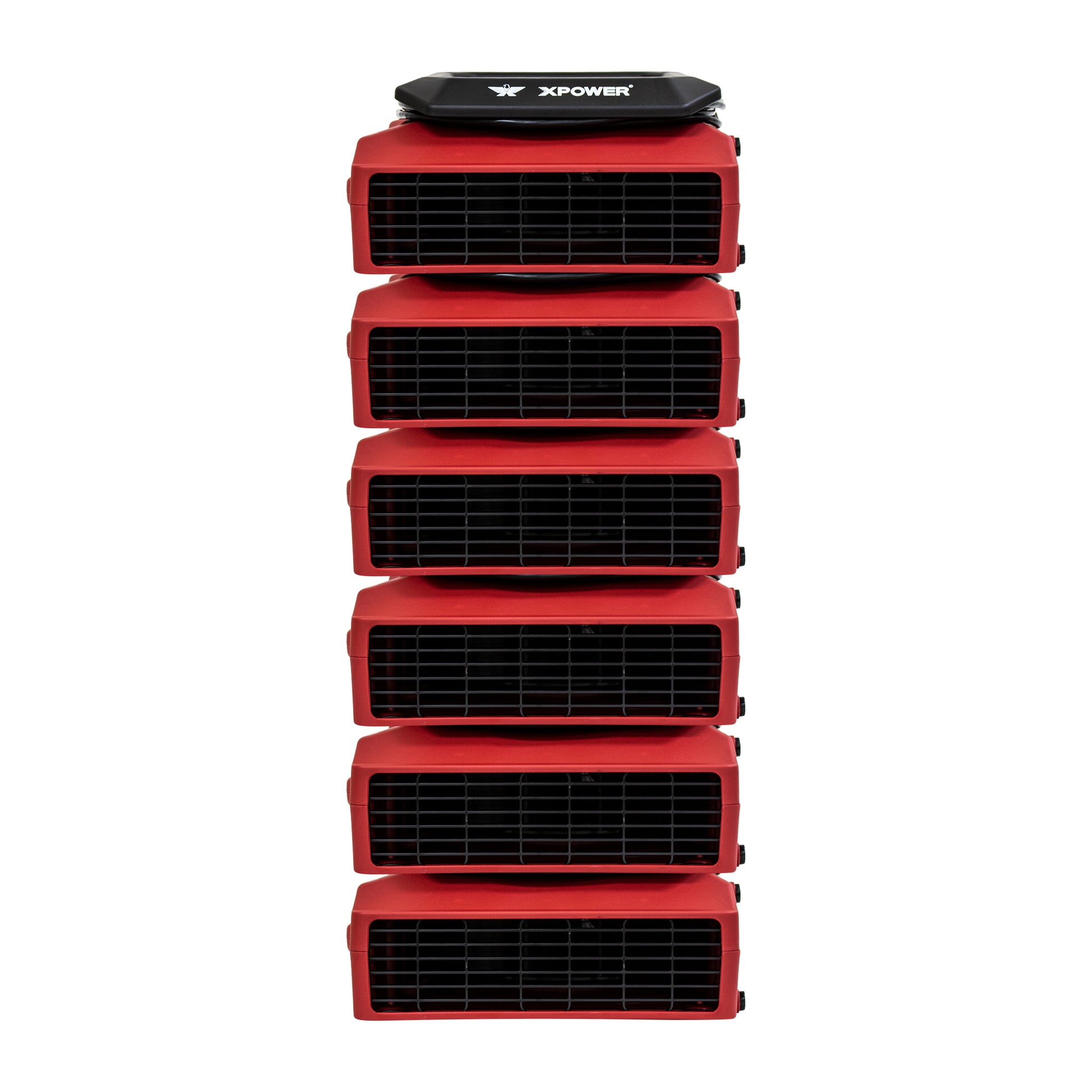 The XPOWER PL-700A Low Profile Air Mover features powerful ventilation in a compact size that does not compromise on power. A 1/3 HP motor and large intake area generates 1050 CFM of extended airflow which has the velocity to maximize drying area efficiently. Strategically placed vents on the underside of unit dry surface below the fan. The PL-700A’s durable polypropylene plastic housing, three speed switch and built in daisy chainable power outlets makes this unit versatile for a variety of drying applications. Stackable up to 6 units high, this unit’s slim profile is the most compact in its class, with a deep nested stackable design for stable transportation. Unit can be positioned horizontally or vertically for drying and storage. A lightweight design and ergonomically positioned molded handle makes the XPOWER Low Profile series of air movers the new industry favorite.